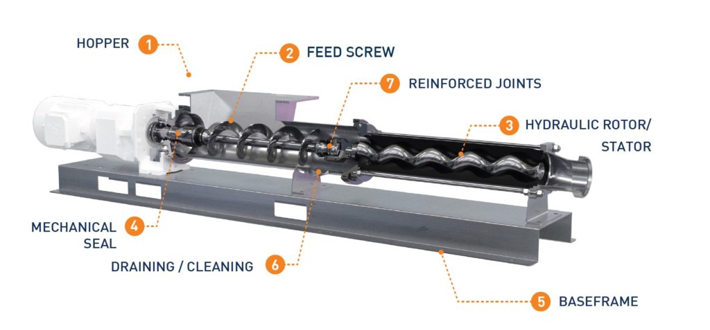 The food-grade EasyFeed progressive cavity pump is ideal for transferring highly viscous, heterogeneous with or without particles, pasty or even sticky fluids. The small footprint makes it easy to integrate and pump disassembly is straightforward for easy maintenance and replacement of wear parts.